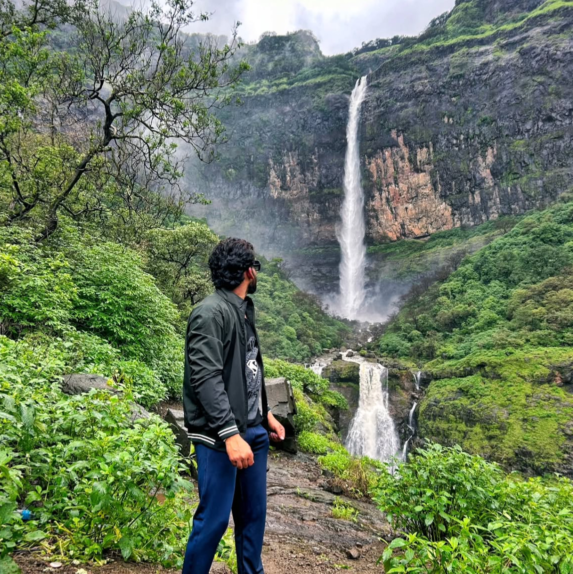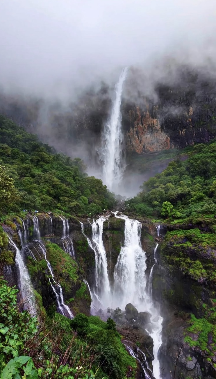 Nanemachi Waterfall is a hidden monsoon gem nestled deep in the forests of Mahad, cascading over 400 feet into a mystical turquoise pool. The nearby multi-tiered Satsada waterfall adds a magical, tranquil charm to the trek.